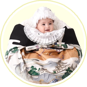お宮参りとは、生後一ヶ月を目安に参拝する行事です。産着と言われるお宮参りの祝着を、抱っこする親もろとも新生児に羽織らせ、神社をお参りします。
