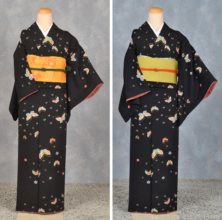 ◆最後に2種類の帯を合わせた着物の表情を比較してみました。