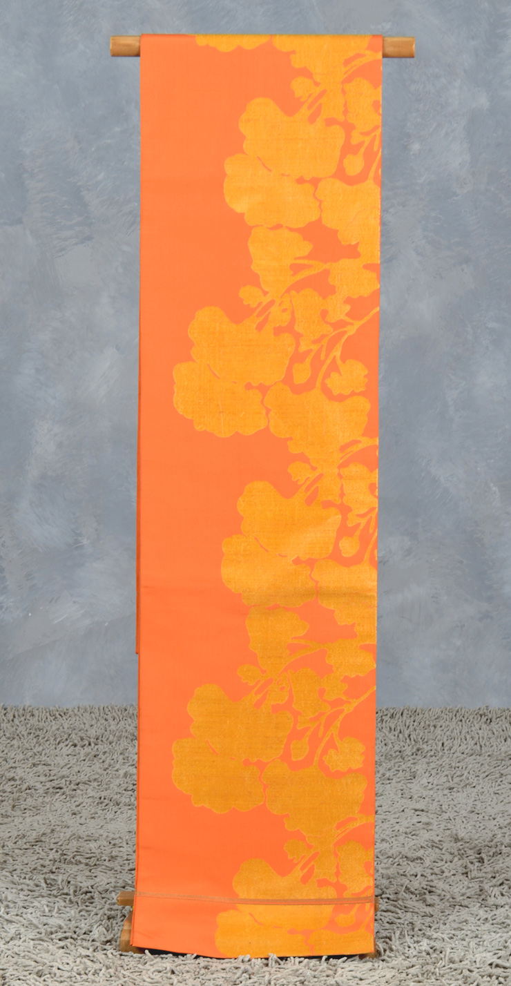 この帯は、珍しい九寸名古屋の無地博多帯です。