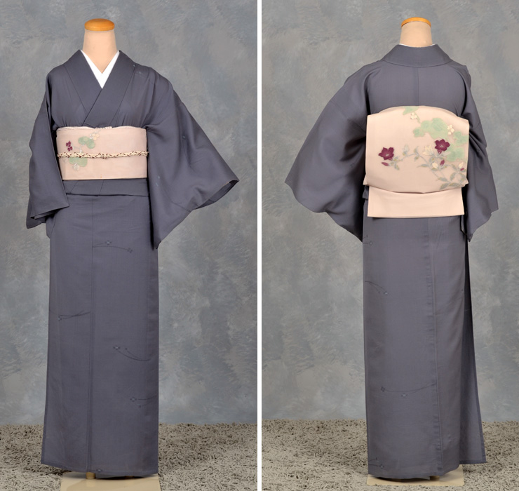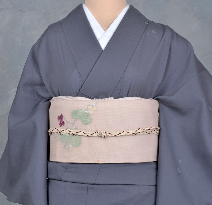 帯は薄紫の紗に野葡萄の柄のように見受けられます。